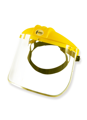The wide-framed face shield is designed to provide maximum safety in industrial environments. Its lightweight, ergonomic design includes an adjustable ratchet suspension that comfortably fits any face type. The headpiece is made of polypropylene, while the protective lens is made of optical-grade PET-G, ensuring clear, distortion-free vision. Its aluminum frame provides greater strength and durability. With a viewing area of 18 x 26.5 cm, this shield is ideal for grinding, polishing, and activities involving particle detachment. It is also impact-resistant, significantly reducing the risk of eye and facial injuries. It is an essential tool in workshops, factories, and environments where reliable eye protection is required.