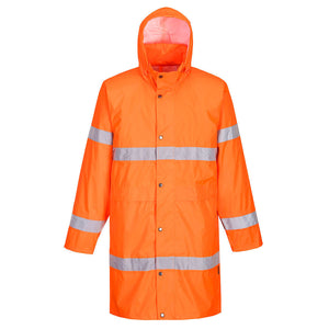 Diseñado para ofrecer una protección total contra los elementos con una longitud de 100 cm, este impermeable le garantiza que se mantendrá visible, seguro y seco. Sus prácticos detalles incluyen un frontal por cremallera con tapete anti-aguaceros con corchetes, capucha desmontable, grandes bolsillos frontales, canesú con aireación y ojetes para mayor transpirabilidad.