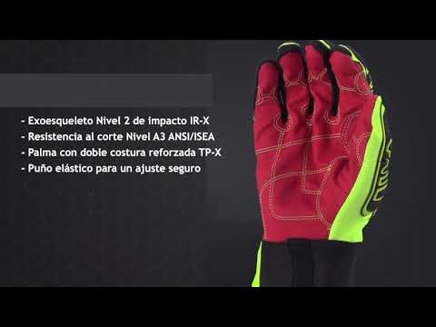 Su característica principal es el Exoskeleton™ IR-X®, la tecnología patentada de HexArmor cosida en el dorso de la mano con un diseño de alta flexibilidad. Esta protección resguarda los nudillos y los dedos contra golpes y pellizcos. La palma de TP-X®, altamente durable y con costuras reforzadas, garantiza un agarre superior en condiciones secas o húmedas,