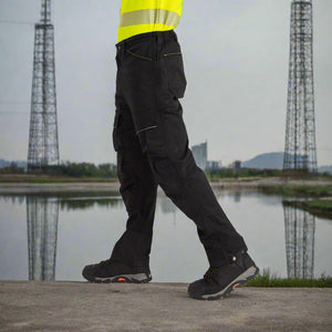 Su diseño exclusivo incluye un bolsillo de parche 3D estratégicamente ubicado para un fácil acceso al usar un arnés. Con un total de 8 bolsillos, incluyendo bolsillos para rodilleras, este pantalón ofrece un almacenamiento excepcional. Las líneas reflectantes para mayor visibilidad, el empeine resistente y el ajuste en el dobladillo lo convierten en una prenda robusta y segura para el profesional moderno.