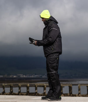 Este pantalón de 100% poliéster puede usarse solo, sin necesidad de otro pantalón debajo. Su diseño moderno y elegante cuenta con un panel trasero elevado que mantiene la parte baja de la espalda caliente y protegida, así como con bolsillos con cremallera para guardar tus objetos de forma segura. Las cremalleras extra-largas en los laterales de las perneras y los bolsillos para rodilleras lo convierten en una solución muy práctica para el trabajador moderno.