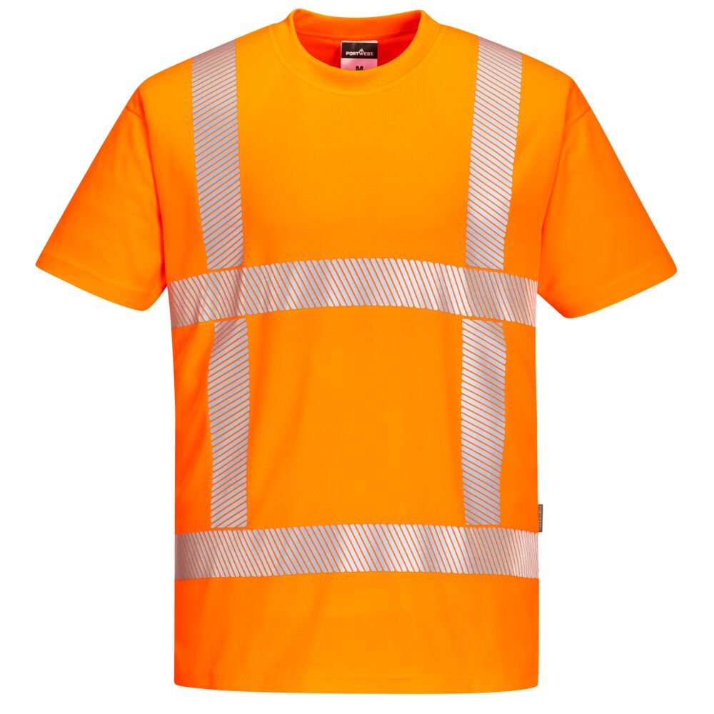 Para máxima seguridad, la playera Polo Naranja RWS cuenta con cintas reflectantes en un diseño segmentado que te brinda total libertad de movimiento, garantizando una visibilidad superior en condiciones de poca luz.