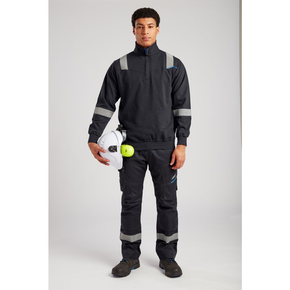 Seguridad de Alta Visibilidad: Equipada con cintas reflectantes segmentadas termo-soldadas, esta sudadera mejora la visibilidad del usuario en condiciones de poca luz sin comprometer la comodidad o la movilidad.